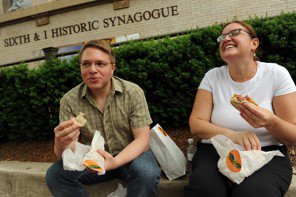 The next time was May 22, 2011, the day after Sixth & I’s kosher food truck, Sixth & Rye, debuted. I dragged my then-intern along with me to wait in the hour-long line, and it was worth every second. Again, I just struck up a conversation with the Post photographer who was covering the event. The resulting photo (left) appeared inside the A-section of the print edition; my hands also appeared on the front page of the website and on the iPhone app.