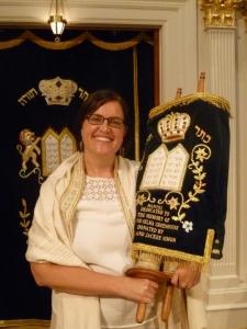 The Torah service was in the same vein. The procession of the scroll happened only after the reading, and there was only one aliyah, meaning that only a very small part of the parshah was read. And the tallit of young girl who had the aliyah was longer than her overall shorts. (I realize that makes me sound crotchety.) The Torah reader gave a short d’var and then did just that: read the Torah. He didn’t chant it; he just read it from the scroll. He then offered his own translation. I’ve never seen this tradition before, though I was told it is standard practice in these congregations in England. The reader did gain my affection by talking about the points of grammar he considered when making his translation; he even used the words “infinitive absolute”!